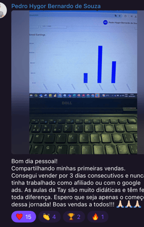 Suas primeiras vendas acontecem já nos primeiros dias, mesmo que você seja totalmente iniciante.